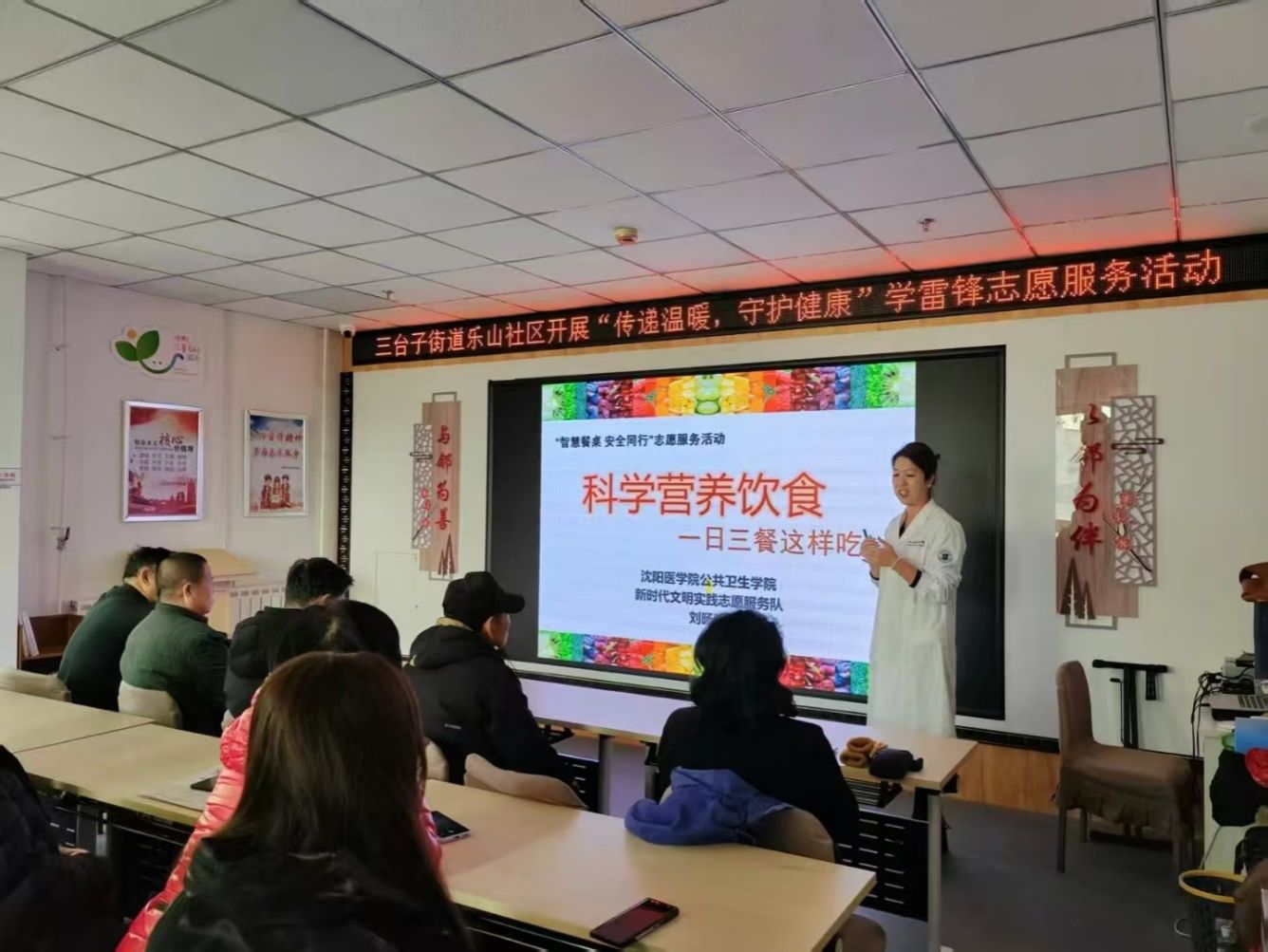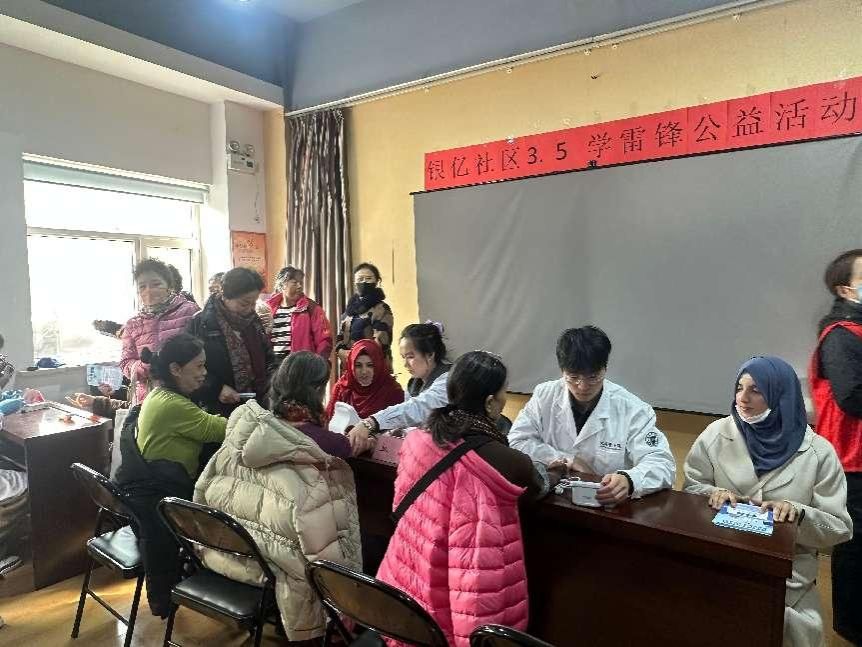 国际教育学院党员师生联合公共卫生学院走进银亿社区、乐山社区,开展健康科普与义诊活动。师生们为居民免费测量血压、血糖,发放《春季传染病防控指南》《慢性病管理宣传册》等科普资料,并针对老年群体常见健康问题一对一答疑。体育教学部党员教师在恒大社区现场教授“八段锦”,通过示范和讲解,帮助居民掌握科学健身方法。“在家门口就能学养生、查身体,党员同志真是把服务送到了我们心坎上!”社区居民王大爷感慨道。