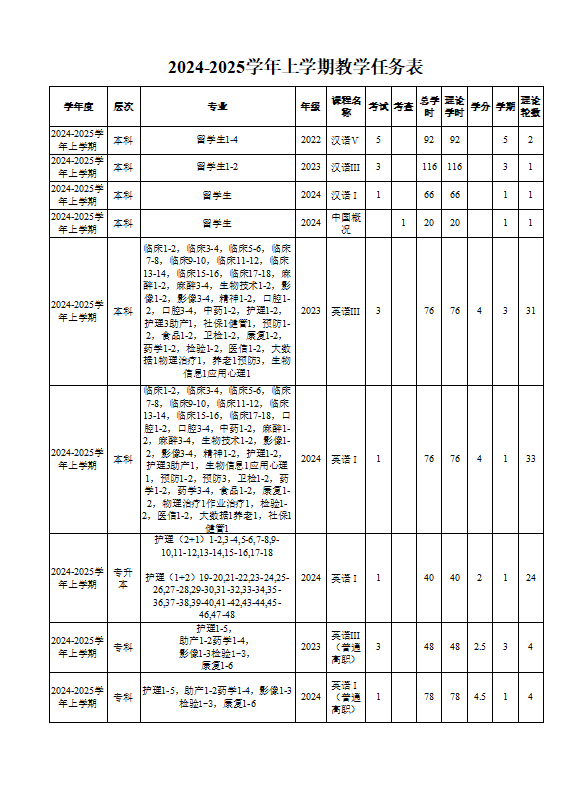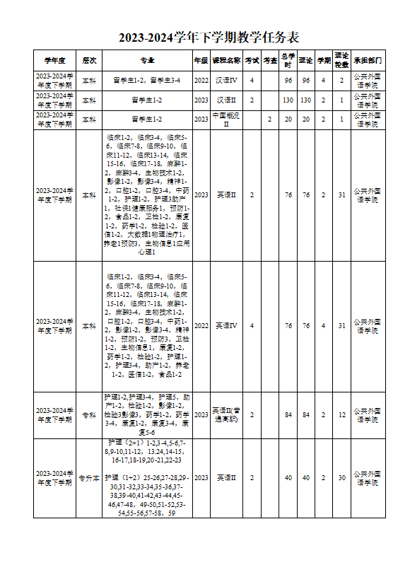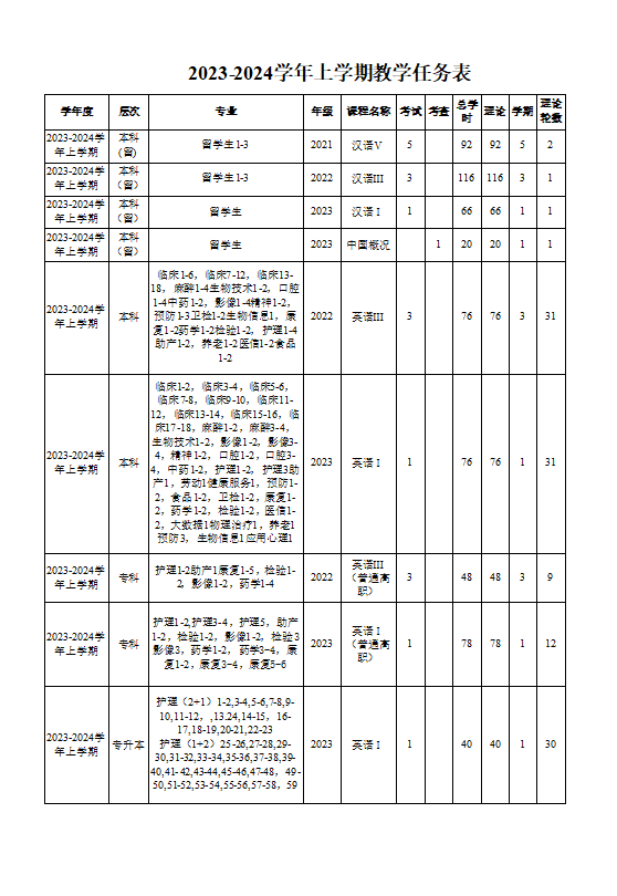 教学动态-学院近几学期教学任务